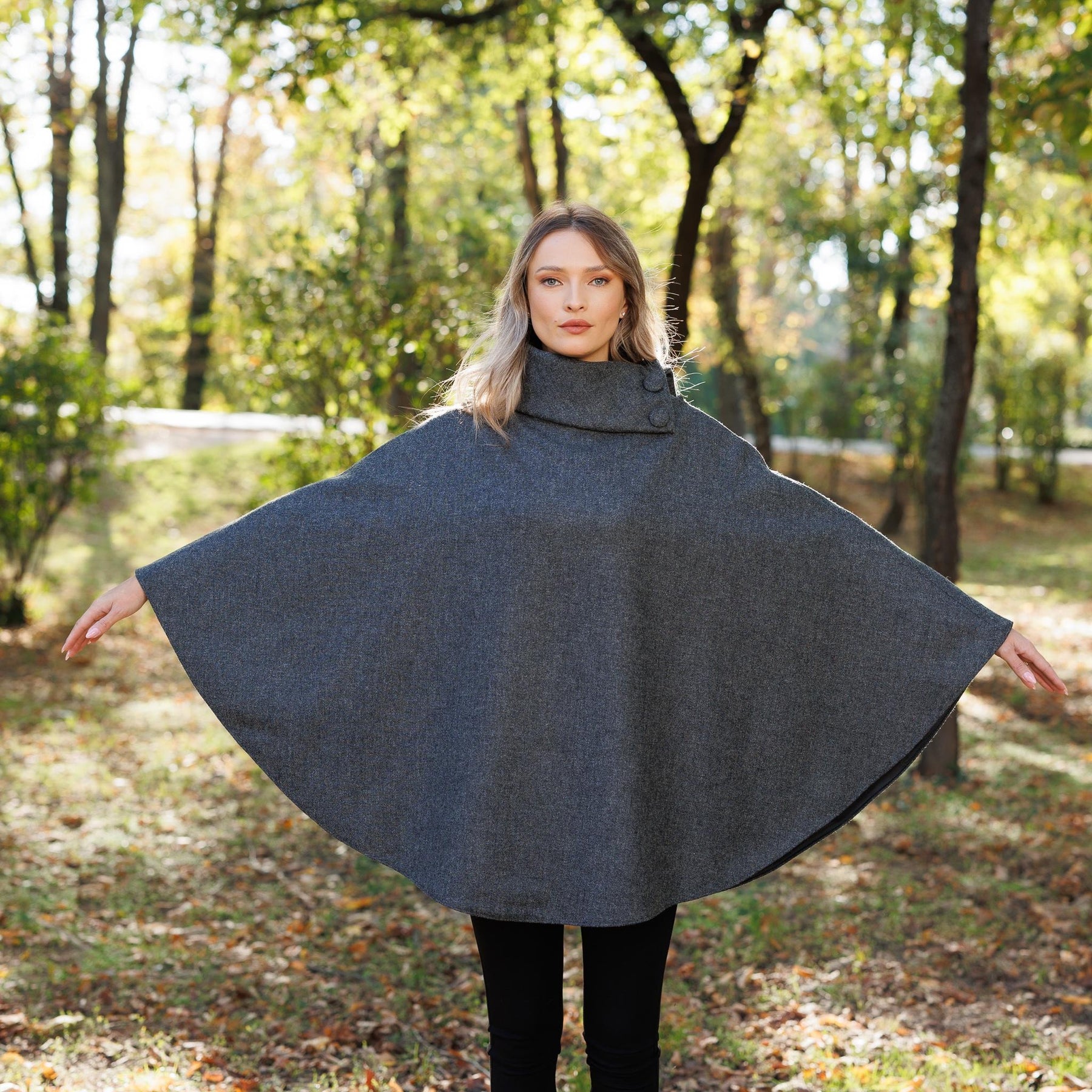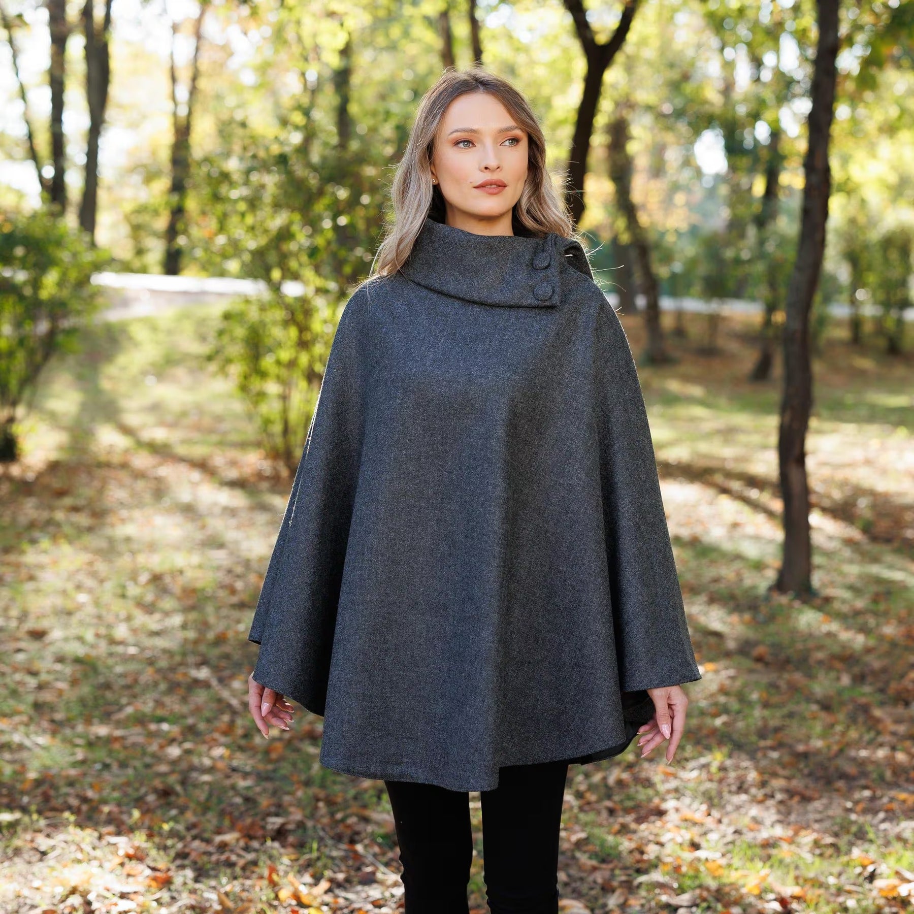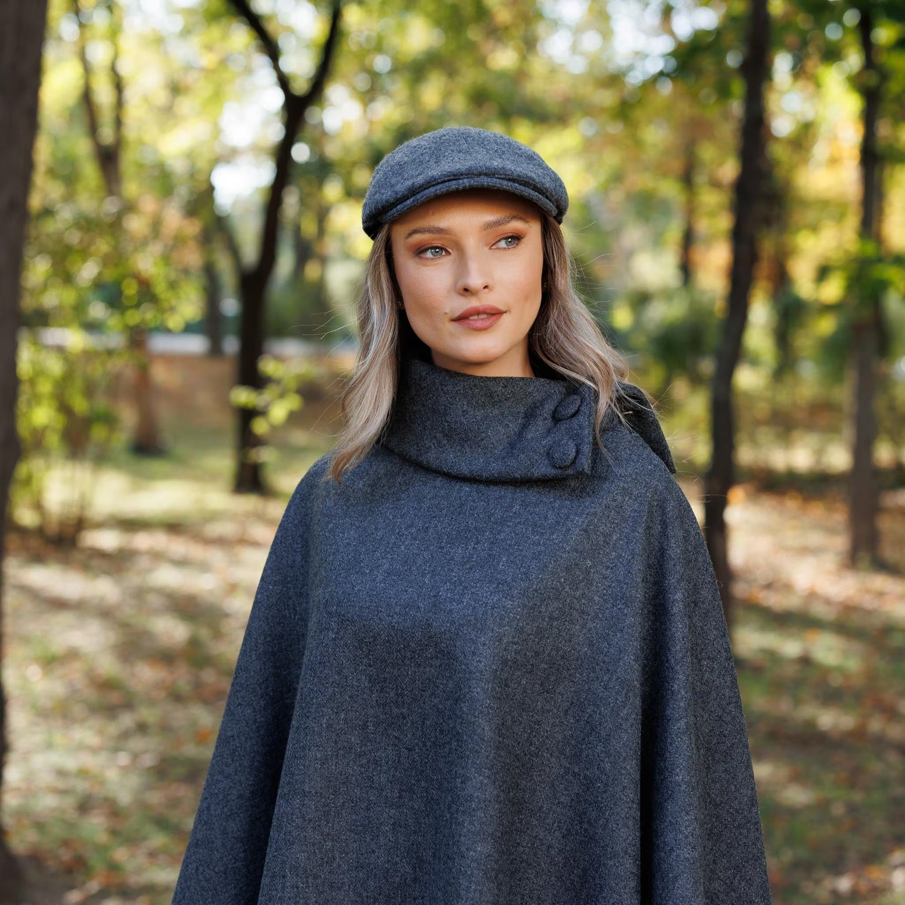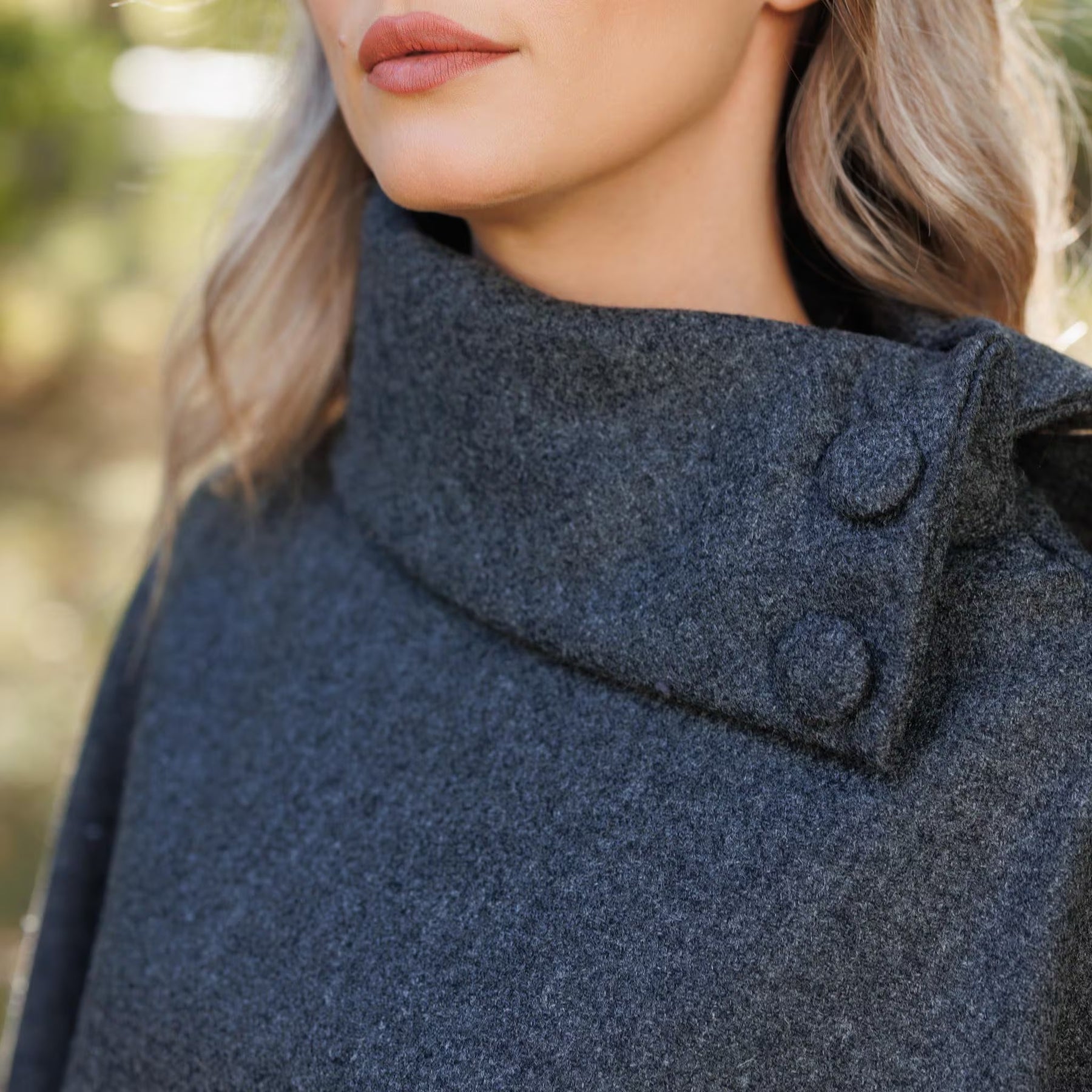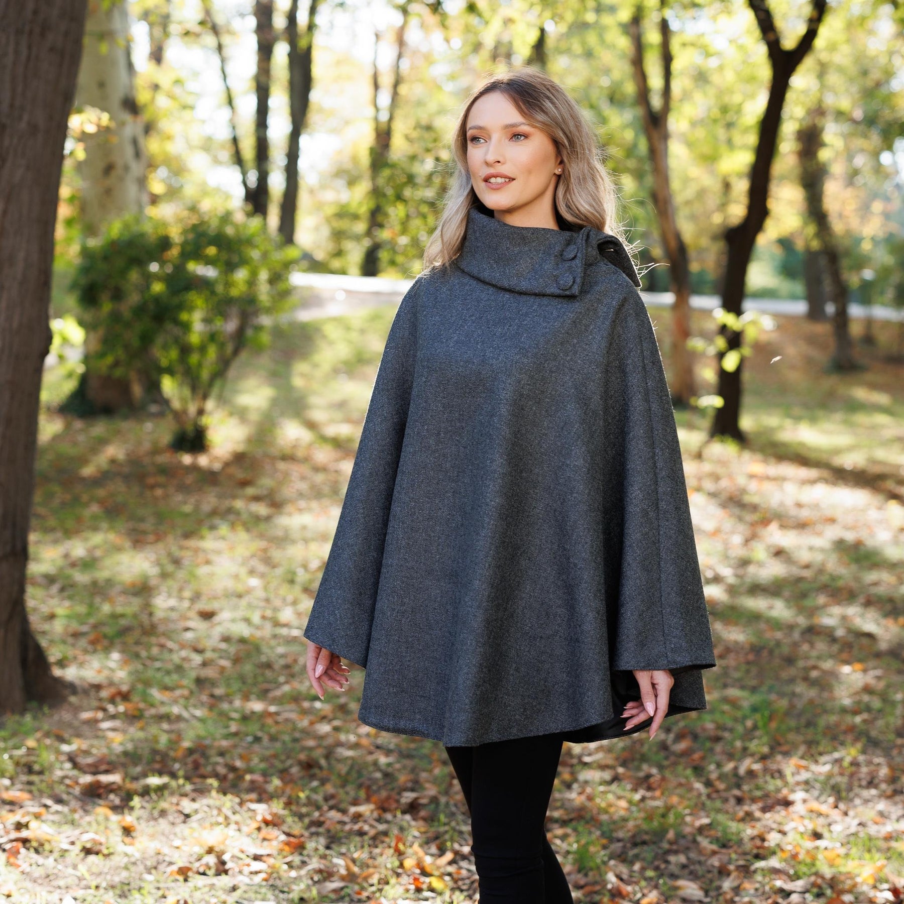 This Ladies Tweed Cape has a beautiful crafted button up collar, for endless styling, the cape is fully lined. This piece is a winter favourite.Simple and  yet so elegant and Timeless.