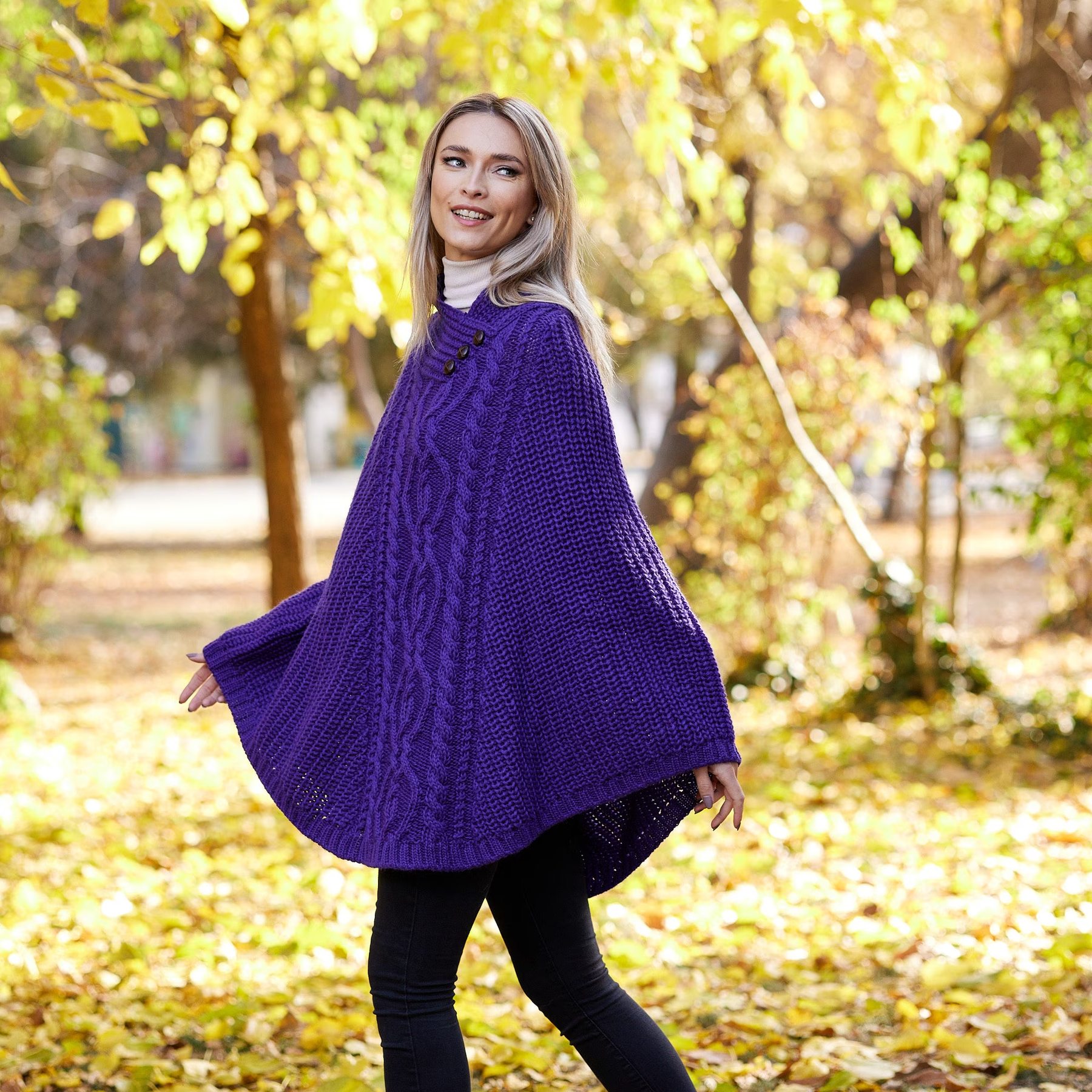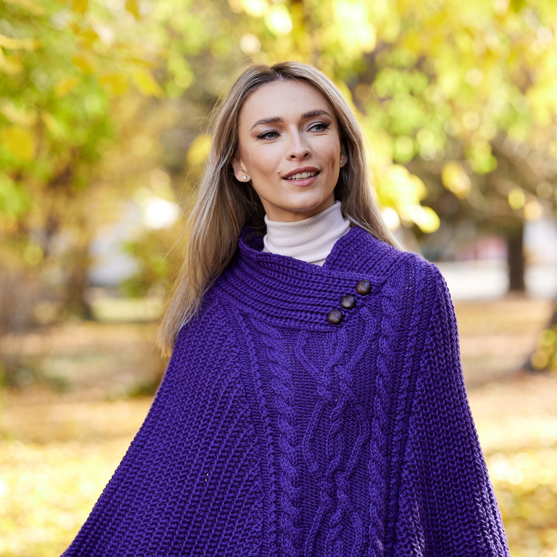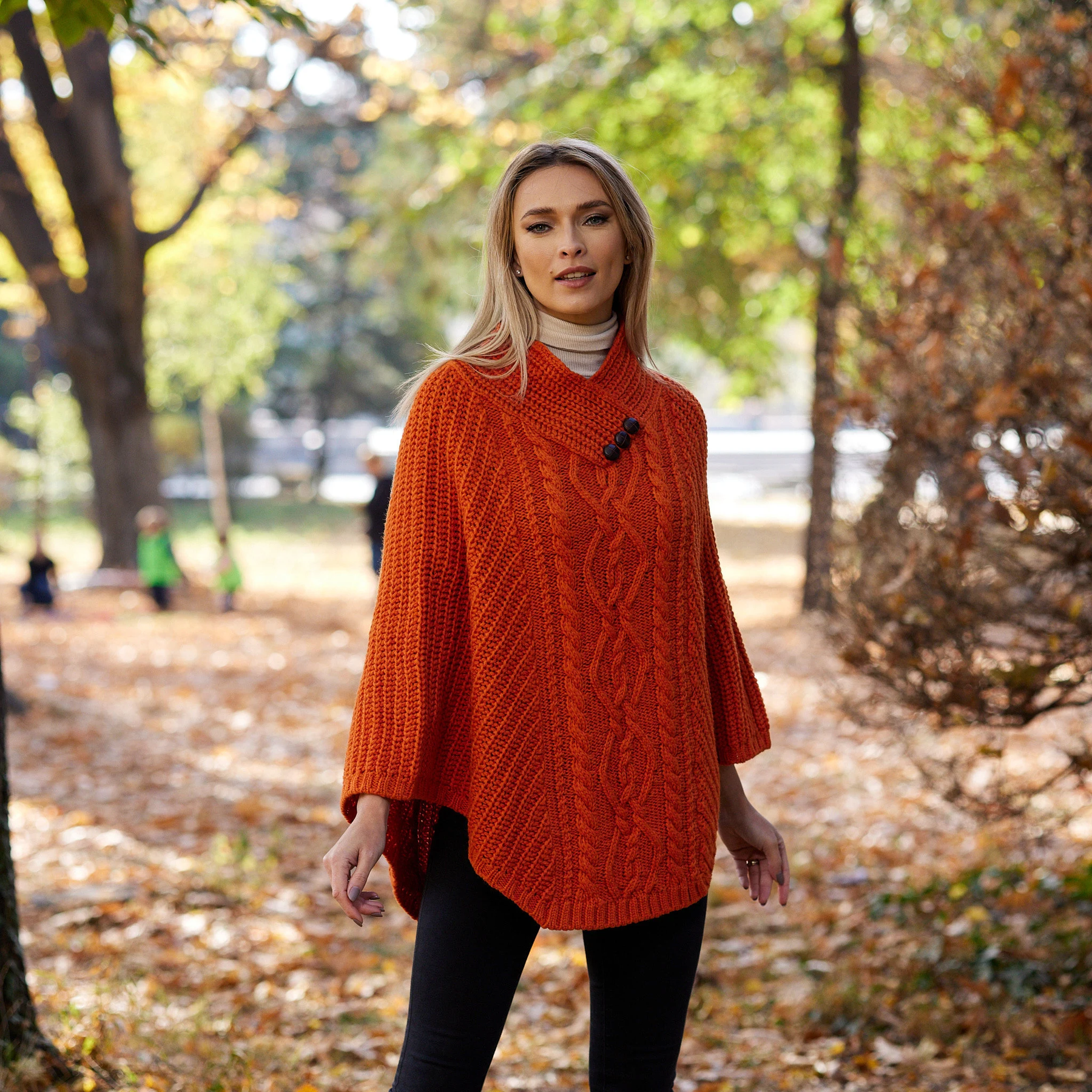 Soft, warm and cosy, our Ladies Merino Wool Aran Poncho has a beautiful drape and stylish collar. Knit with a Traditional Aran stitch. This piece is a winter favourite, simple and yet so elegant and timeless.